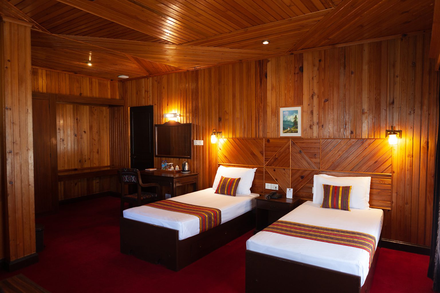 This historic heritage resort features 59 deluxe rooms, thoughtfully designed in traditional Bhutanese architectural style, reflecting the country’s rich cultural heritage. The warm wooden interiors and authentic design elements create a timeless charm while ensuring modern comfort for guests. Hotel Olathang offers a wide range of facilities, including a multi-cuisine restaurant and bar, outdoor dining and bar areas, private dining spaces, and a well-stocked handicraft shop showcasing local craftsmanship.